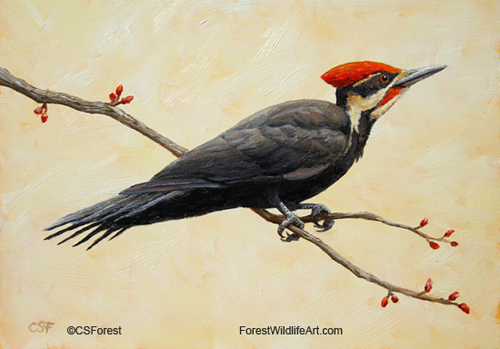 Miniature painting No 7, a beautiful pileated woodpecker.